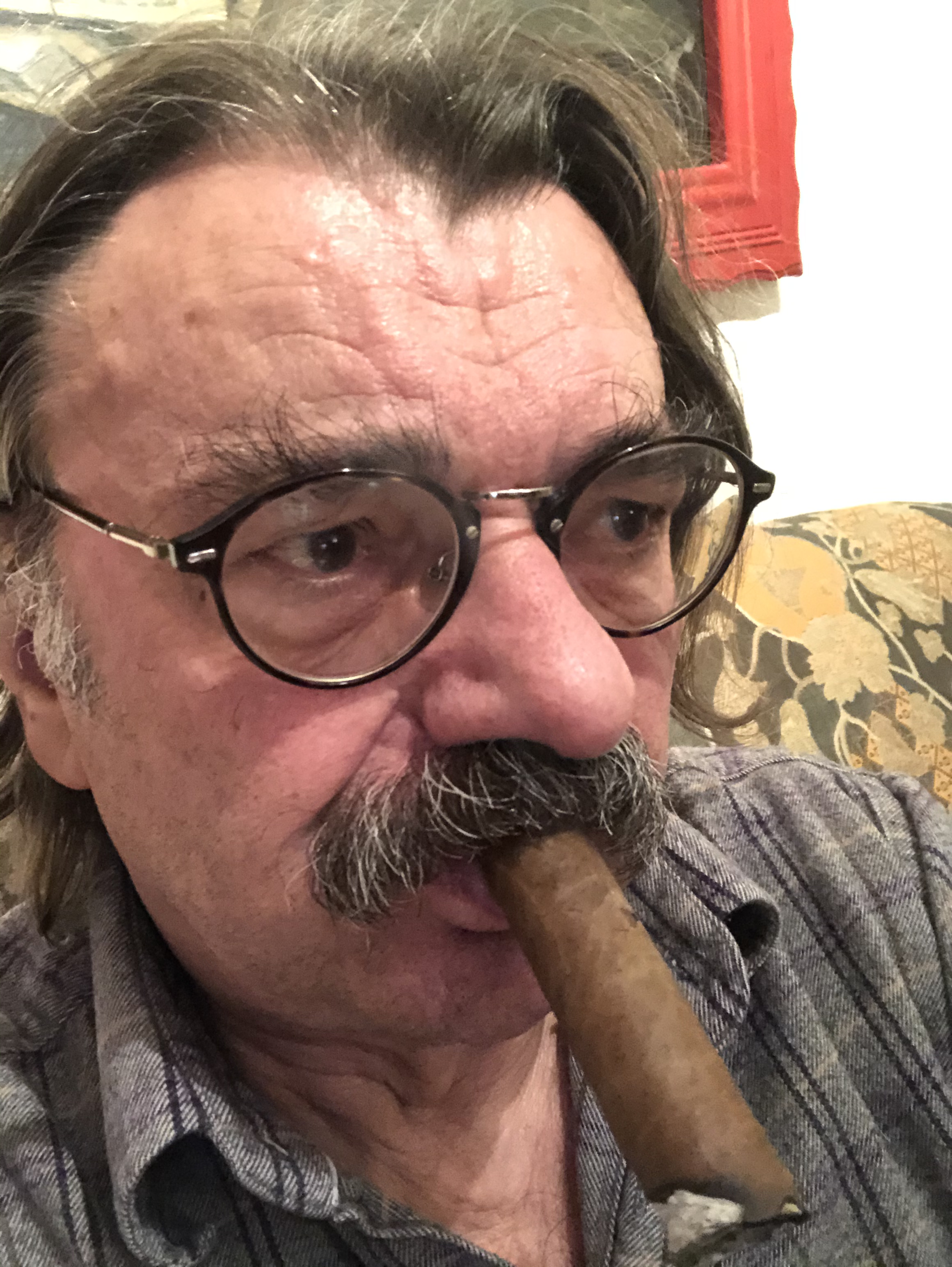 Ich lese in dieser Zeit sehr viel. Und ziehe mich in einer Lesepause aufs Sofa zurück und an einer Zigarre und starre auf Adonis, den völlig entspannten Platzhalter.