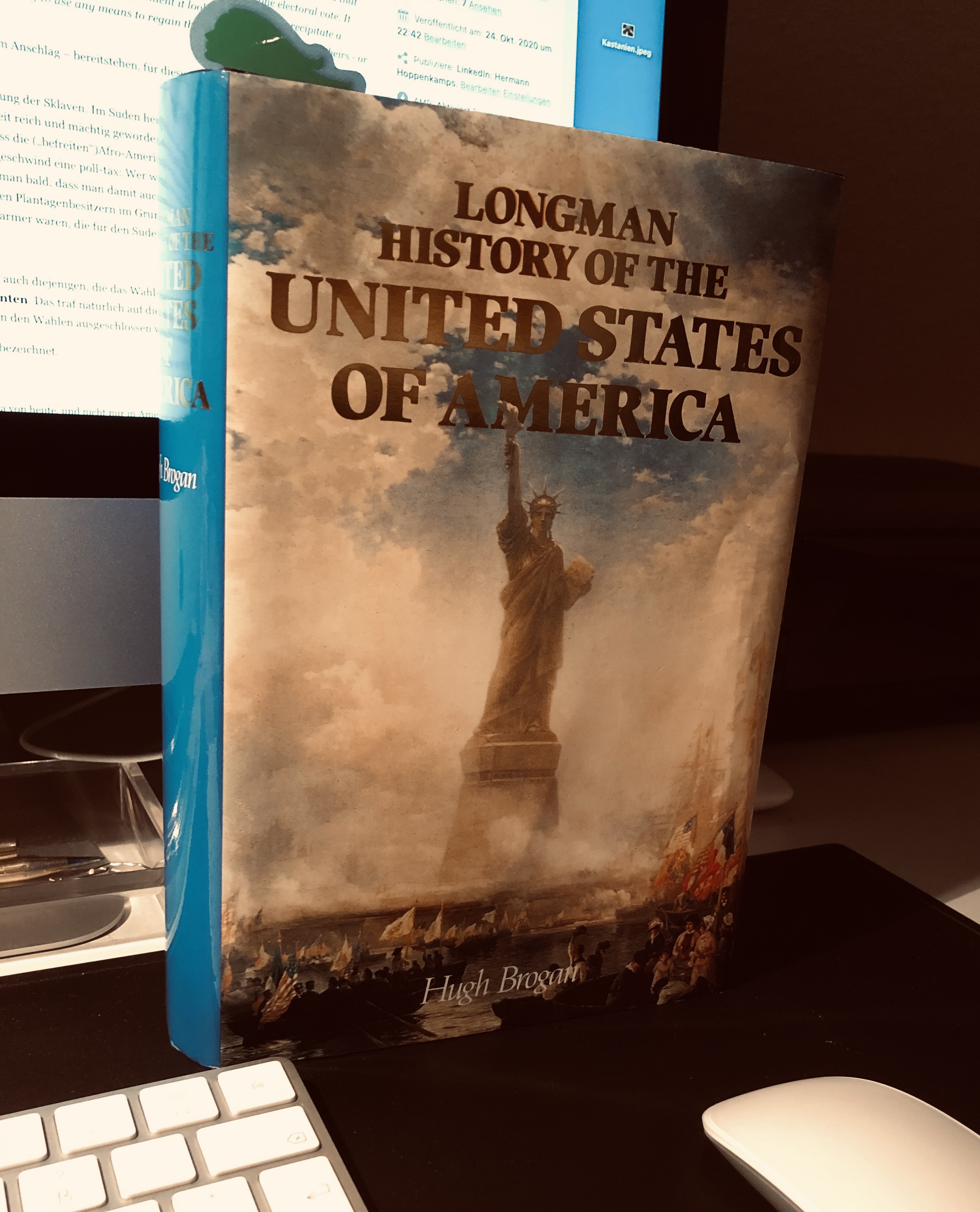 Ich kann jedoch mit einem konkreteren Beispiel aufwarten, das ich im 14. Kapitel der „History of the United States of America“ von Hugh Brogan entdeckt habe. In diesem Kapitel geht es um die Reconstruction der Südstaaten nach dem Bürgerkrieg, also um die Zeit von 1865 bis 1877. In diesem Kapitel entdeckte ich u.a. eine ganze Reihe von Ereignissen, die mir aus dem heutigen Amerika sehr bekannt vorkamen. Damals waren die Republikaner die Guten, die Demokraten im Süden die Bösen. Oder umgekehrt. Das kam und kommt immer auf den Standpunkt an. Im folgenden Abschnitt geht es um die Präsidentschaftswahlen im Jahr 1876, also 140 Jahre vor der denkwürdigen Wahl im Jahre 2016